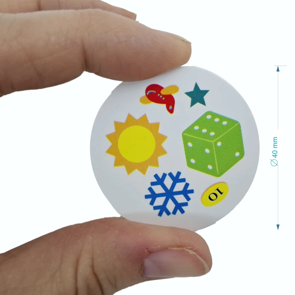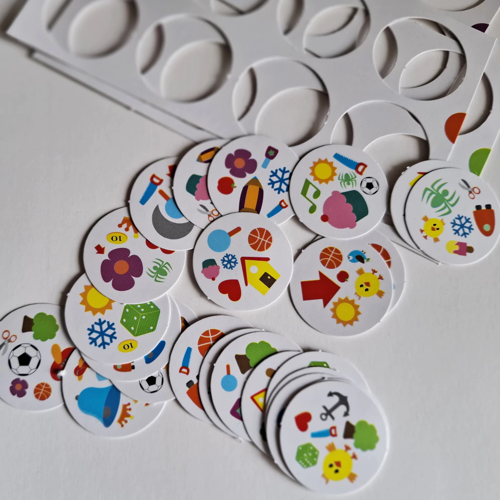 Existen varias formas de jugar, pero la regla básica implica encontrar el único símbolo idéntico entre dos cartas lo más rápido posible.