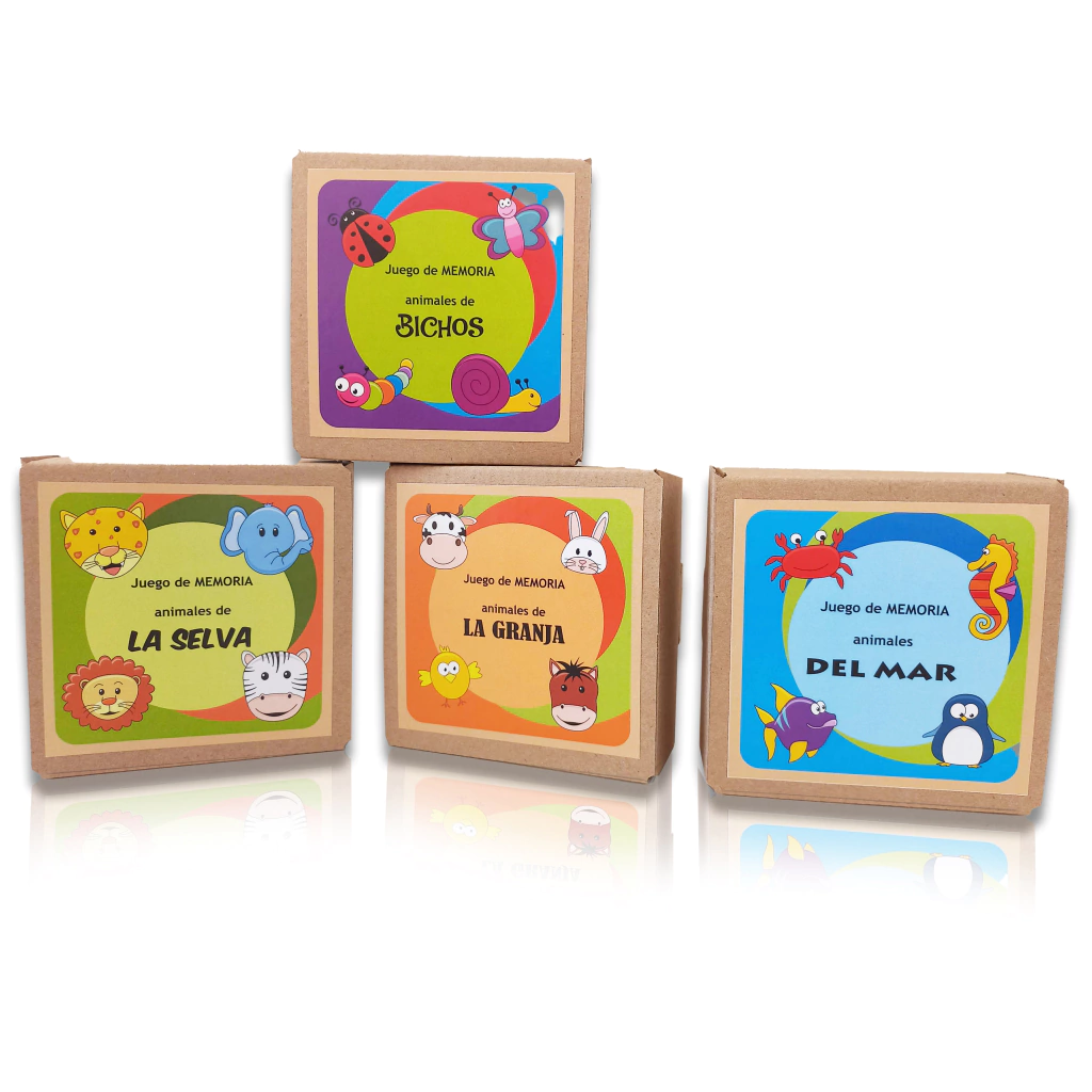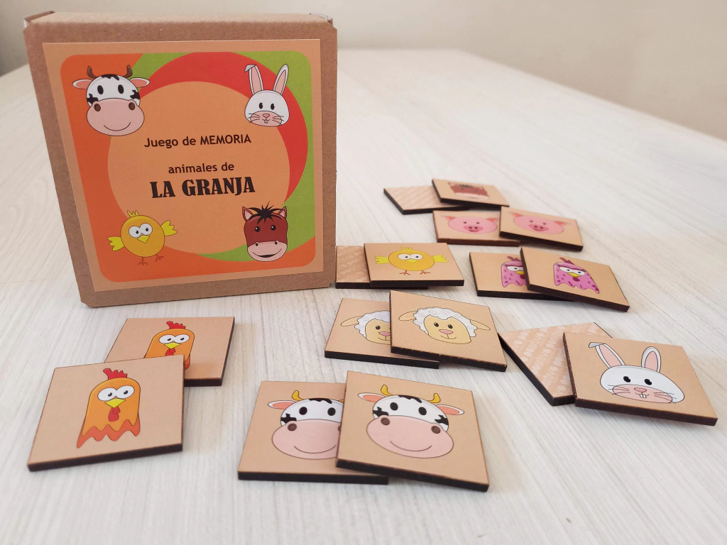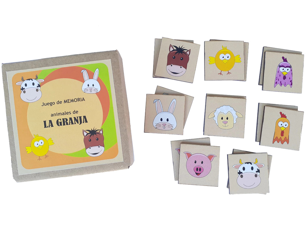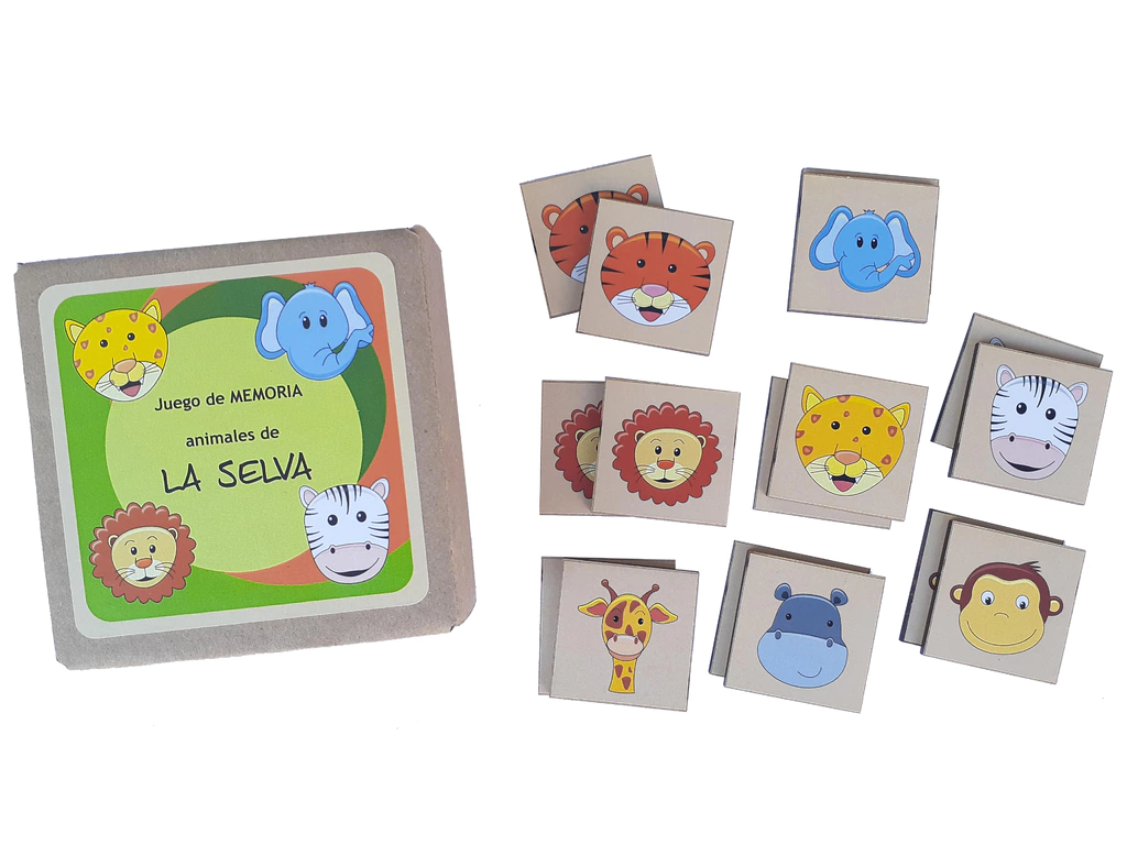 Para los más grandes: Colocar las fichas con el dibujo hacia abajo. El primer jugador, da vuelta una ficha y luego otra. Si son iguales, se lleva el par y gana otro turno. Si no, vuelve a dar vuelta las fichas y las deja en su lugar. Luego le toca al siguiente jugador. ¡Quién encuentre más pares resultará ganador! Recordar la ubicación de las fichas es fundamental para encontrar los pares.