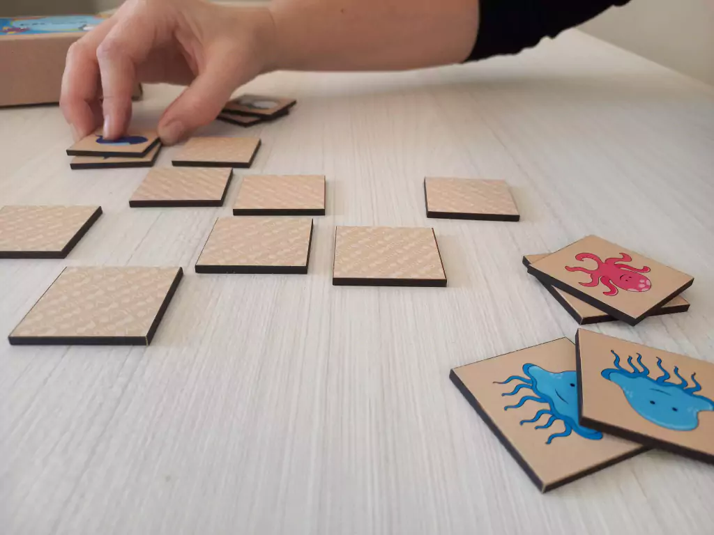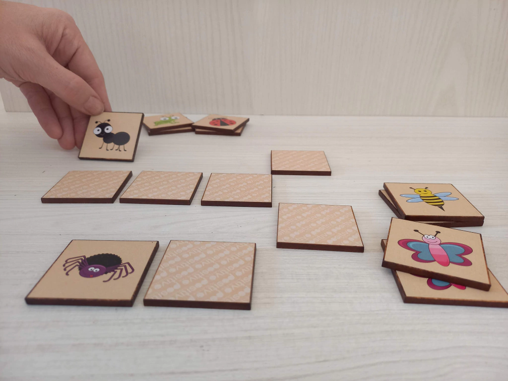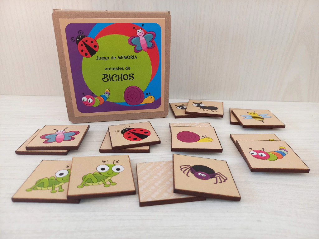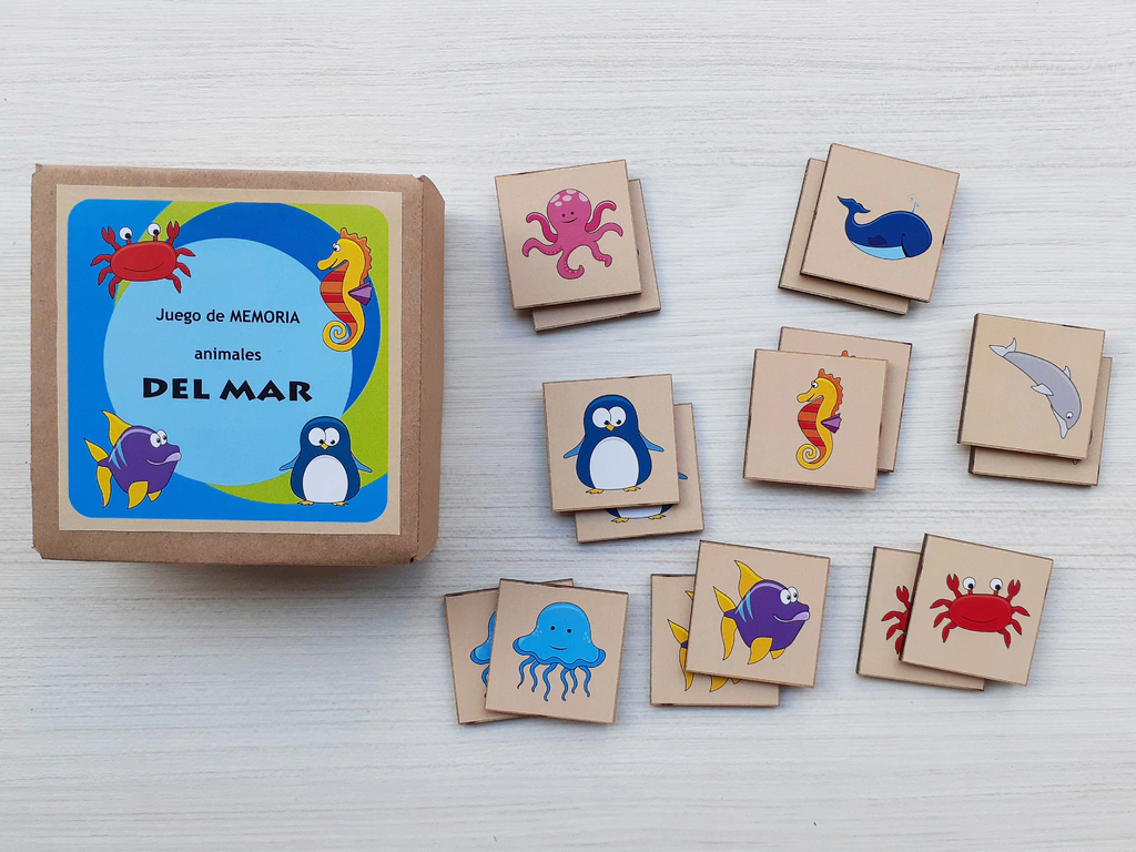 Para los más grandes: Colocar las fichas con el dibujo hacia abajo. El primer jugador, da vuelta una ficha y luego otra. Si son iguales, se lleva el par y gana otro turno. Si no, vuelve a dar vuelta las fichas y las deja en su lugar. Luego le toca al siguiente jugador. ¡Quién encuentre más pares resultará ganador! Recordar la ubicación de las fichas es fundamental para encontrar los pares.