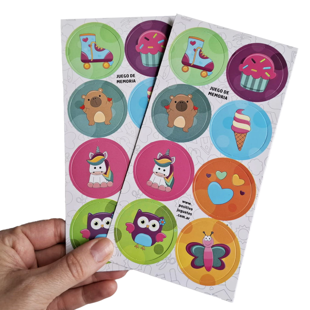 Este juego contiene 8 pares de fichas ilustradas y propone 3 modos de juego para adaptarse a distintas edades y niveles de dificultad.